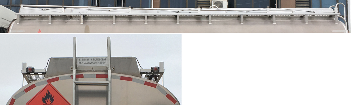 | 配置 | 1、該車適用于危險(xiǎn)品運(yùn)輸,運(yùn)送危險(xiǎn)貨物車輛類型為:FL型,類項(xiàng)號(hào):3。運(yùn)輸介質(zhì):汽油,密度:700千克/立方米。罐體有效容積23.7立方米,罐體外形尺寸(長(zhǎng)×寬×高)(mm):7200×2400×1700。2、側(cè)、后防護(hù)材料均為鋁合金,螺栓連接;后防護(hù)截面尺寸(寬×高)(mm)60×120,下邊緣離地高500mm。罐體上部選裝上走道。選裝工具箱鎖扣。3、EBS系統(tǒng)生產(chǎn)廠家及型號(hào)分別為:威伯科汽車控制系統(tǒng)(中國(guó))有限公司(EBS3)。僅選用排氣管前置、限速裝置(限速79km/h)、前輪盤式制動(dòng)及子午線輪胎的底盤;安裝帶有衛(wèi)星定位功能的行駛記錄儀;發(fā)動(dòng)機(jī)型號(hào)及油耗值(L/100km)為:WP7.270E61/36.79,WP7.300E61/36.79。后軸采用空氣懸架。轉(zhuǎn)向輪安裝輪胎爆胎應(yīng)急防護(hù)裝置;該車型可選裝ETC車載裝置。 | ||