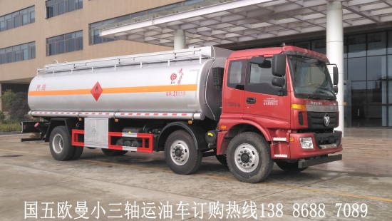 上裝配置:國五歐曼小三軸運油車罐體采用武鋼Q235碳鋼材質(zhì),罐體有效容積:21立方米,罐體外形尺寸(長×寬×高)(mm):7500×2380×1600(工具箱外裝在車架左側(cè)或右側(cè),安裝位置可前后變化)。罐體厚度6mm,封頭6mm厚,帶油泵,可泵進(jìn)泵出,帶一全套歐標(biāo),(含一個歐標(biāo)罐口,一個海底閥,一個下裝油接口,一套油氣回收裝置,一套防溢探桿及探桿座)。帶靜電接地盤,排氣管前置,配一個防火帽,兩根輸油管,兩個滅火器,油漆味銀粉色,貼反光帶,三個易燃液體標(biāo),安全告示。帶底盤隨車工具,保修手冊,底盤合格證,CSC5252GYYB5整車合格證,機(jī)動車發(fā)票。