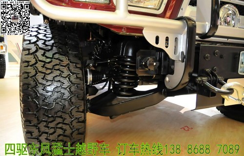 東風猛士四驅越野車,總質量5噸,裝載質量1.75噸,牽引質量2噸。是一個系列化、多用途、全新三代高技術的**、民用越野汽車。東風猛士裝備了東風康明斯四缸發(fā)動機150馬力帶中冷增壓,**功率112kW/2700rpm,**扭矩502Nm/1500rpm,膜片離合器和五速手動變速器,續(xù)駛里程900km。還可以選裝美國進口的145千瓦V8電控增壓柴油機和四檔自動變速器,0~80km/h加速時間17秒,**車速達135km/h。